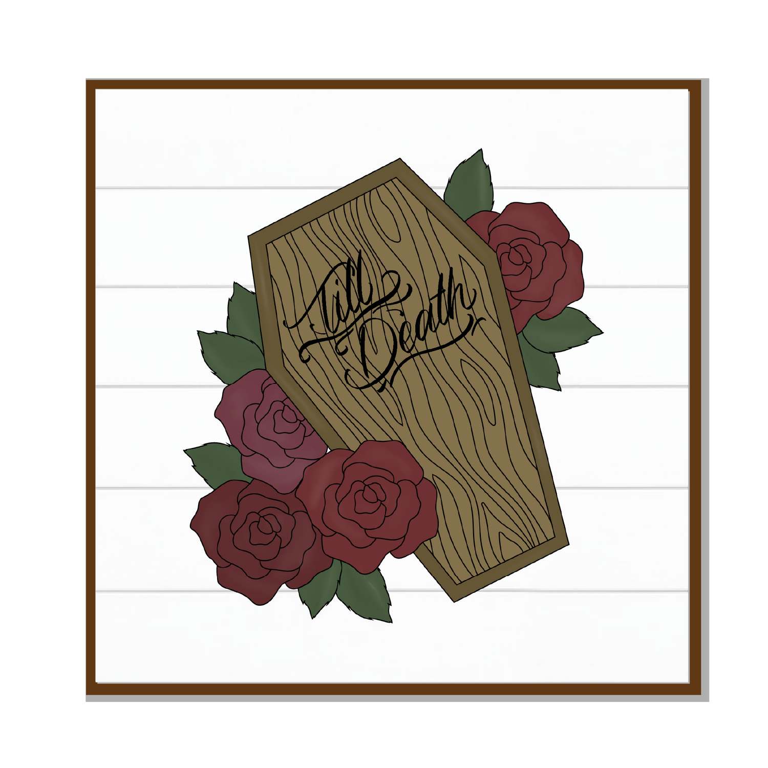 The “Till Death” lettering and wood grain on the coffin are provided as separate files. You can engrave them before cutting, cut them as separate pieces, or omit them entirely.