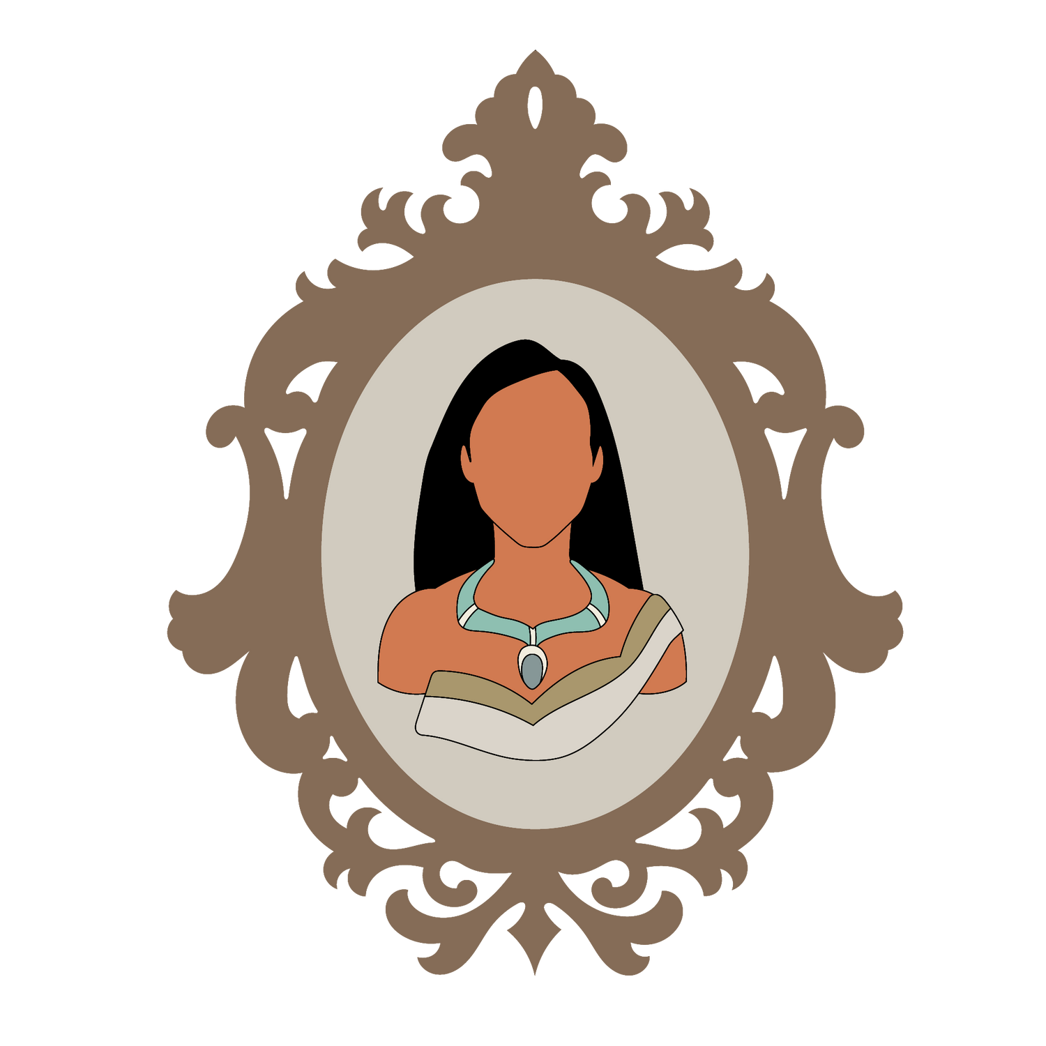 the deets | faceless princess pocahontas with intricate frame template